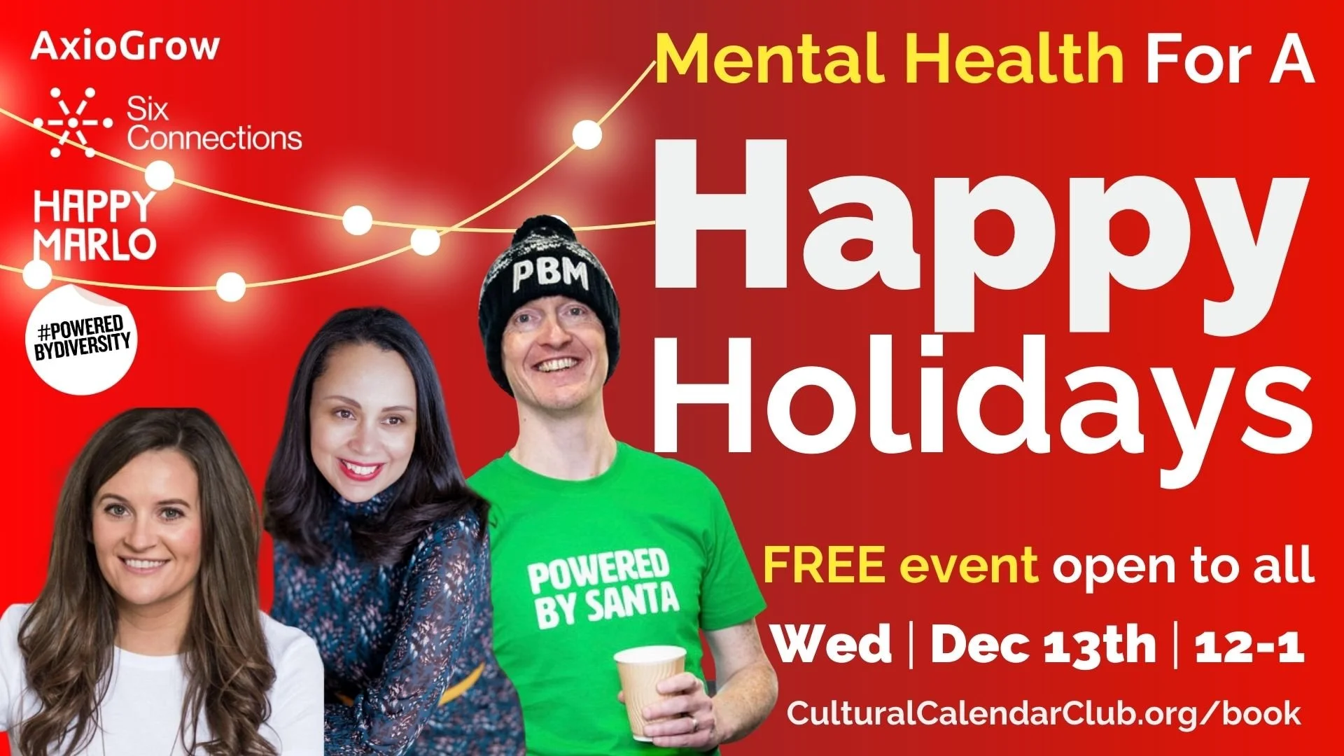 The festive season is a great time for many but for some it's tough. Whether you celebrate religiously or not, it’s the one of the few times each year when collectively most of the population are in holiday mode - and it’s IN YOUR FACE with bells on. It’s time to talk about Mental Health over the holidays so join us on 13th Dec where we’ll meet: